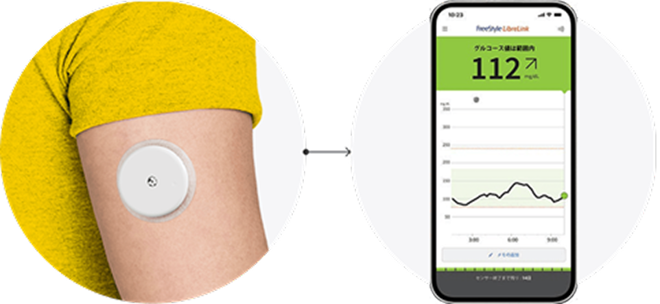 治療の基本は「食事・運動・薬物」の三本柱。当院では薬に頼りきるのではなく、無理なく日常に取り入れられる工夫を患者さまと一緒に考え、さらに、持続血糖測定(CGM:フリースタイルリブレ)を用いて血糖の変化を“見える化”し、「通いやすく、続けやすい」治療計画を立てることで、合併症の予防と生活の質(QOL)の向上を目指しています。